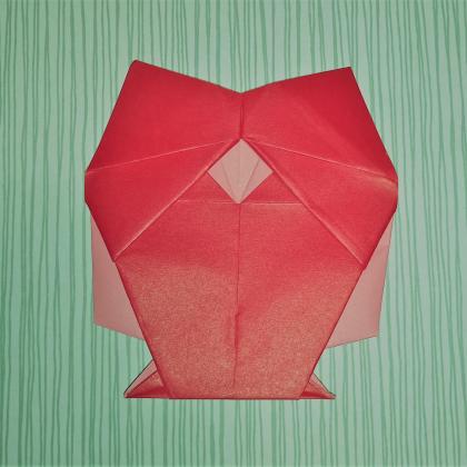 A simple owl with closed eyes that can be folded only with valley and mountain folds. Enjoy it!