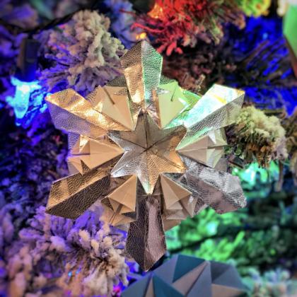 This modular mandala, designed by Matthew Green, works great as a Christmas decoration. I recommend folding it with white paper or silver foil paper.