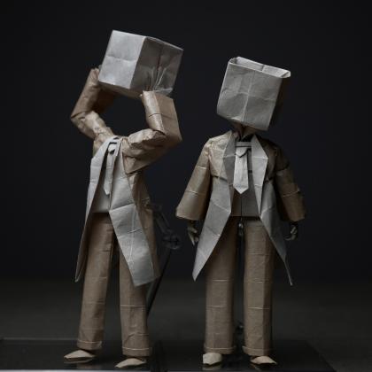 Each figure is made from 45x45cm Tissue x Kozo. The squares were cut from the same large piece of paper that I hand treated.