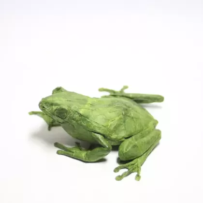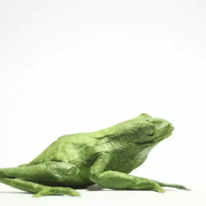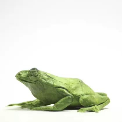 This model was folded from a 34cm square of unryu, without having previously treated it with cmc glue. The entire process of foldind was made with the paper in all its original essence. For the shaping, I used a hairspray to make a wet-shaping technique and bring the frog to live.