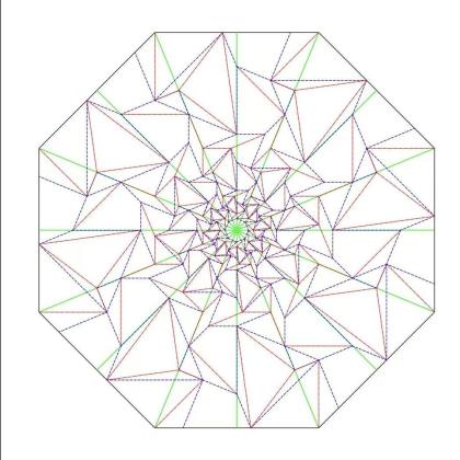 The original work was made on a dodecagon paper, but I applied it to an octagon and changed the scale of two contiguous rectangles. And finally, I divide each rectangle into two triangles.