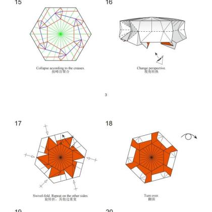 This is a fractal tessellation which doesn’t asks for many precreases. Just do some close-sink and you will get a recursive and ordered tessellation.